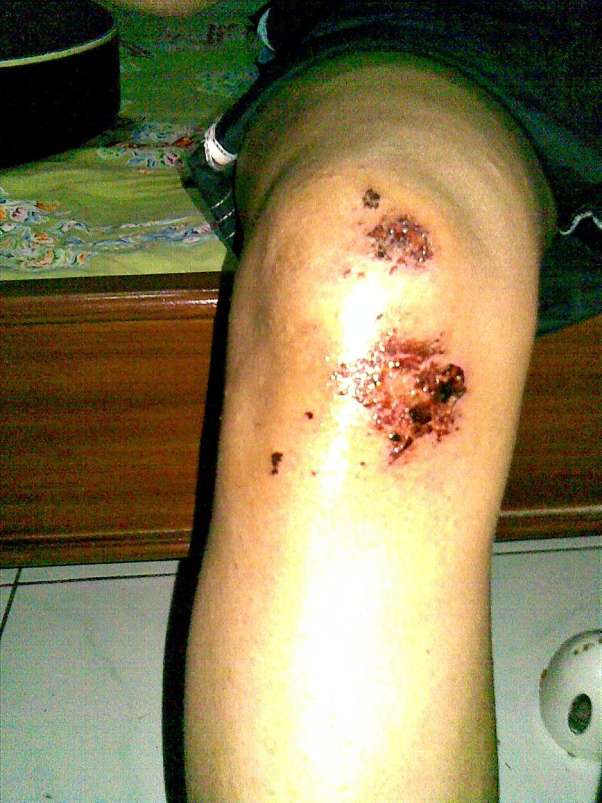 Ini udah jauh mendingan, dengkulnya juga udah mulai kering..