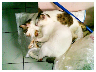 Dikasih kardus, satu kucing satu biar ngga ribut 😀 |
